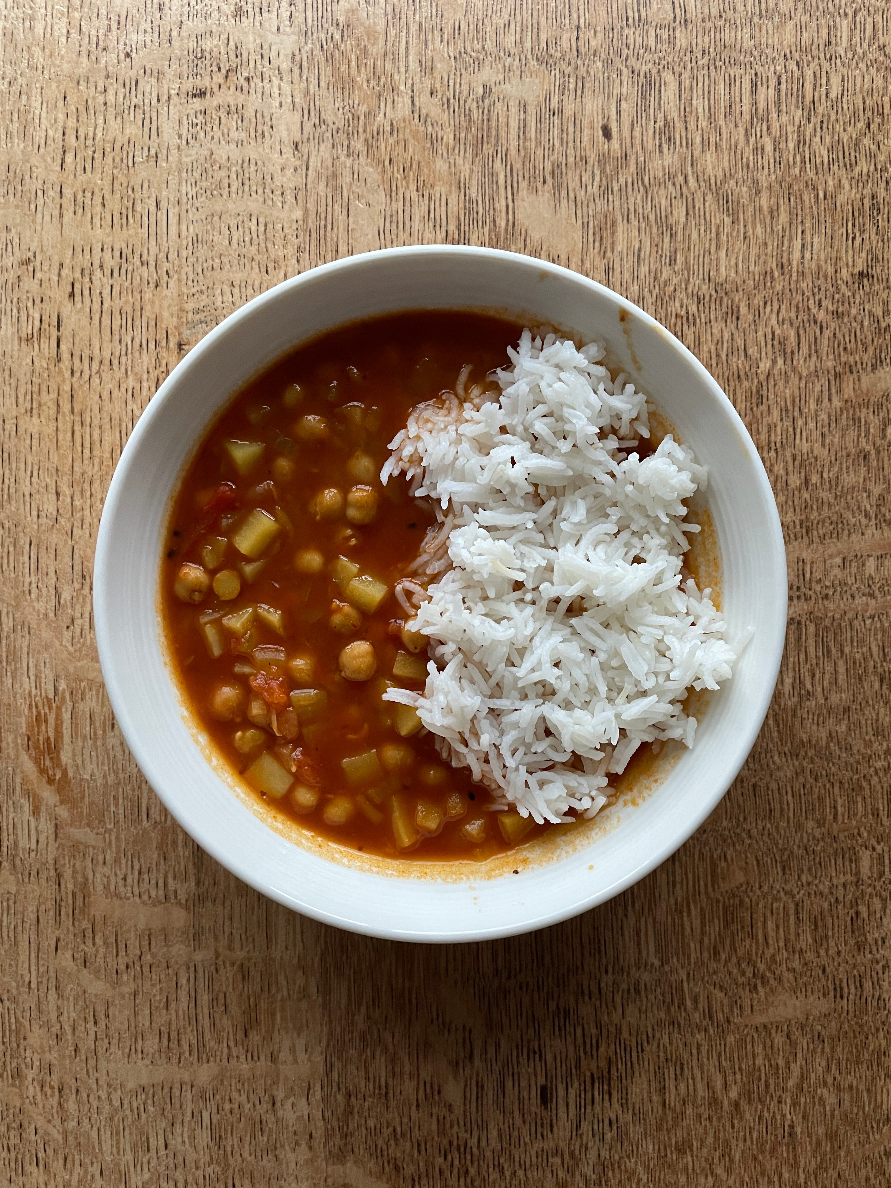 Chana masala was the first Indian meal I made in Spain. I walked to Lavapiés, where I knew I could find South Asian grocers, and asked a shopkeeper whether he stocked chana masala powder. After what seemed like an age in the back room, he emerged with a box of Laziza chana masala mix, covered in a fine film of dust. I went home and FaceTimed my parents, who told in no uncertain terms that I should never use than more than half the recommended amount of masala. Like most twenty-year-olds, I ignored this parental advice, and followed my instinct. I figured that the masala would be a little stale, and used twice the recommended amount. The resulting dish razed my entire digestive tract. Despite my failure, I powered through, ladling yoghurt onto my helping of chickpeas and rice, and wiping away the beads of sweat on my face. Twenty is a truly dickhead age, and I often left a trail of destruction in that tiny kitchen, leaving an exasperated Zuzka to scrub turmeric stains on the counter and sweep grains of rice off the hob. Perhaps my abdominal pain was a form of retributive justice.